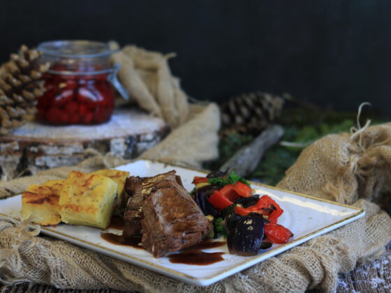 Pitkään haudutettua naudan niskaa ja punaviini-kastanjakastiketta (G, L)