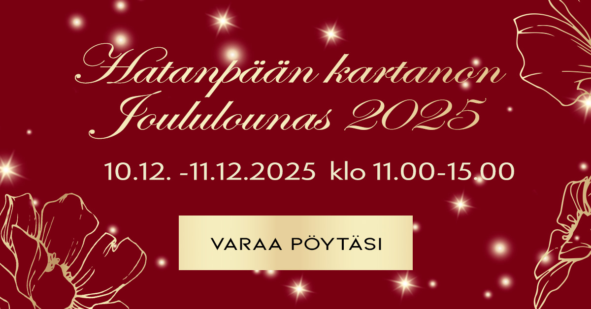 Huippusuosion saavuttanut Hatanpään Kartanon joululounas kutsuu jälleen virittäytymään juhlatunnelmaan! Runsas buffet pöytämme pitää sisällään perinteisiä joulun makuja kartanon twistillä toteutettuna. Lounas tarjolla vain pöydän varanneille. Paikkoja rajoitetusti nopeimmille.